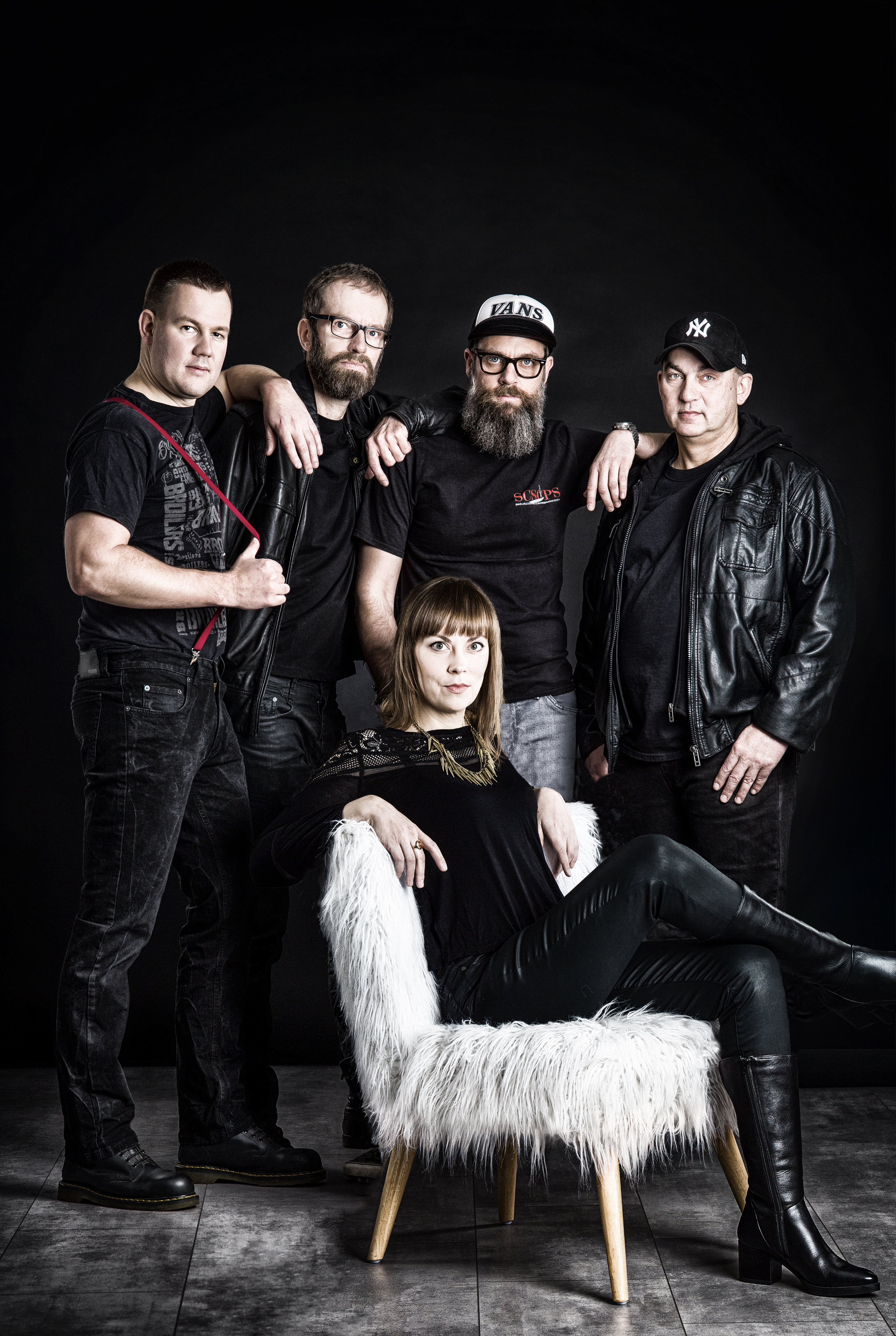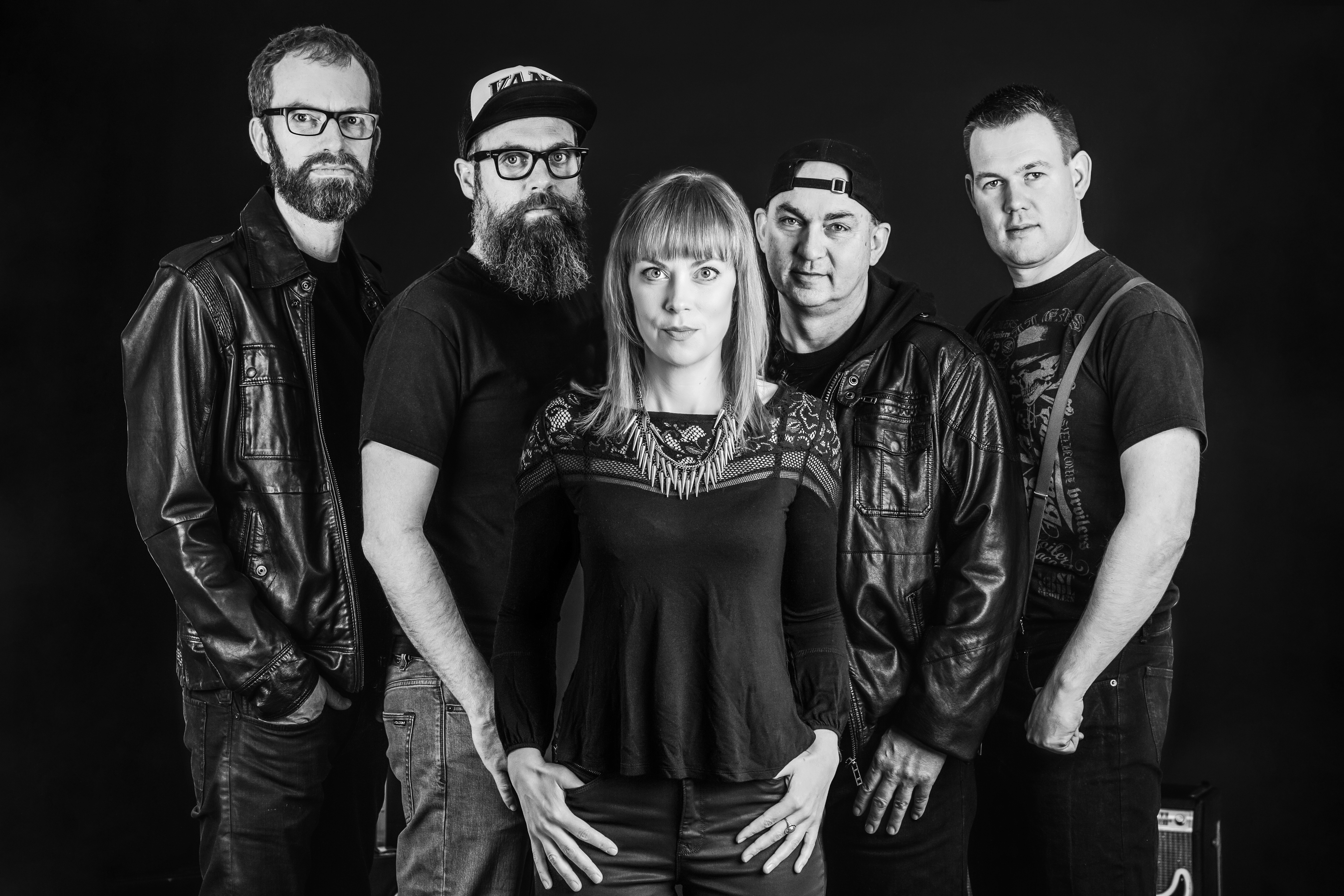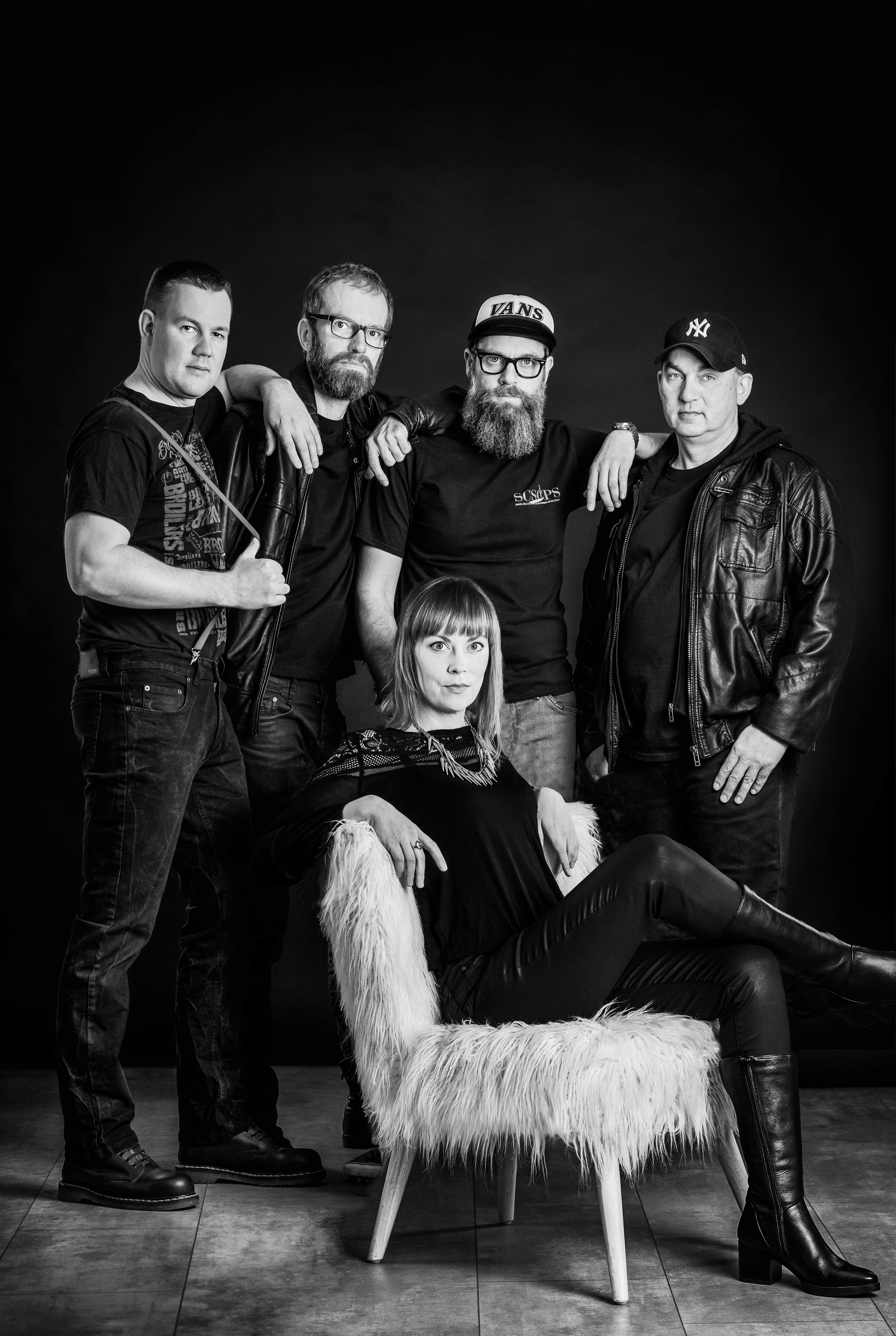 Bandfoto mit Logo S/W (Portrait), PNG |